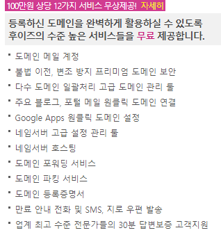 실제 도메인의 사용은 가격 이외에도 홈페이지의 접근성, 제공되는 서비스, 안정성 등 다양한 장단점이 존재하므로, 실제 구입시에는 조금 더 꼼꼼히 살펴보고 구입하기를 바란다.