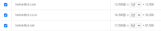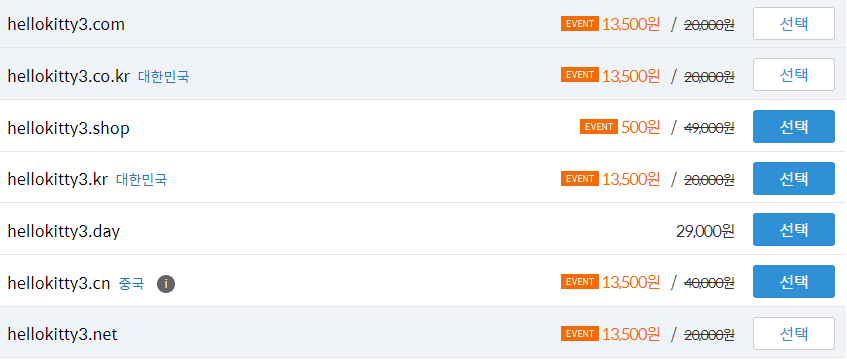 국내 도메인 업체이다. 가격이 13500원이다. 구입 기간별로 할인율이 이상하게 적용되는데, 잘 모르겠다. 이벤트 도메인으로 500원짜리 도메인도 많이 있다.