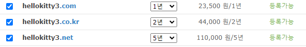 1년 등록 가격이 23500원이다. 카페 24도 비싼 편이다. 그래도 호스팅 업체 (웹 공간)로 카페 24를 사용하는 사람이 많고, 그에 따라 연동이 쉬우므로 사용하는 사람이 꽤 있는 것 같다.