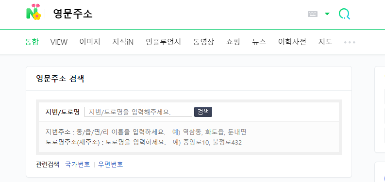 기업은행은 한글로만 작성되게 되어 있다. 영문 주소를 작성할 수 있도록 하는 카드사도 있으니, 영문 주소를 확인해 놓자. 영문 주소는 네이버에서 영문주소로 검색하면 나오는 폼에 입력해서 얻을 수 있다.