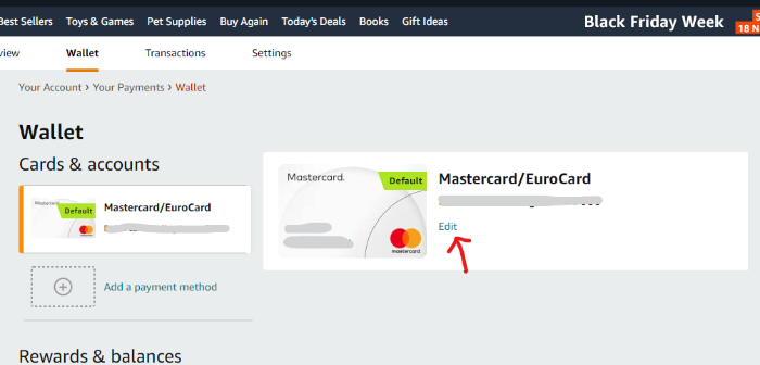 Wallet메뉴를 누르면 내가 등록한 카드 정보가 나온다. 기존에 등록한 카드의 Edit를 누르거나 신규로 추가함으로 내 카드의 Billing Address를 확인할 수 있다.