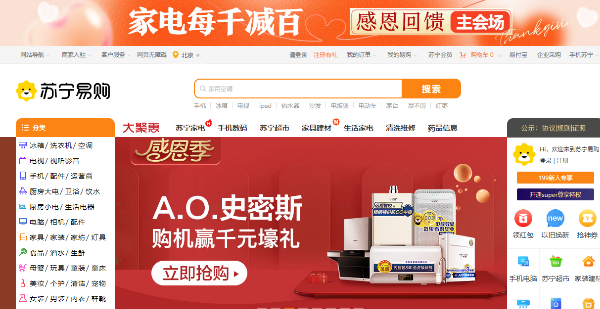 Suning.com은 컴퓨터, 휴대폰, 디지털 제품, 가전제품, 모자용품, 화장품 및 기타 수만 가지 제품을 특별 온라인 가격에 판매하는 선도적 종합 온라인 쇼핑몰입니다. 쑤닝은 쑤닝플라자를 운영하며 중국 전역에 수백 개의 쇼핑몰을 운영하고 있습니다.