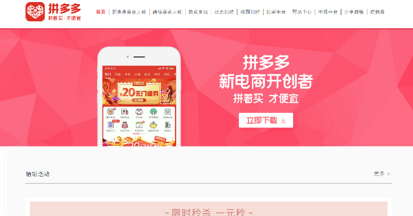 2015년 설립된 중국 최대의 소셜 커머스 플랫폼입니다. 그룹 구매 방식으로 상품을 판매하는 방식으로 인기를 끌고 있습니다. C2B 플랫폼으로, 공구를 통해서 물건을 싸게 구입할 수 있습니다.