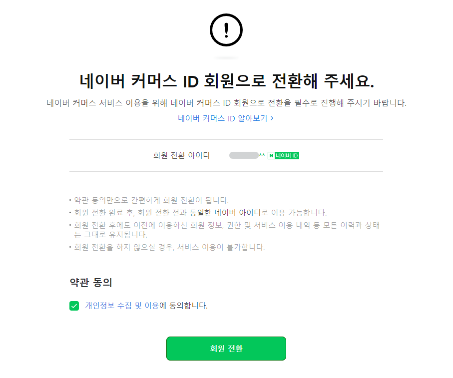 이전에는 스마트스토어에 가입만 하면 됐었는데, 이제는 네이버 커머스 ID로 전환하거나 가입해야 한다. 네이버 커머스 ID로 가입하면 네이버 로그인상태에서 스마트스토어에 쉽게 로그인할 수 있다.