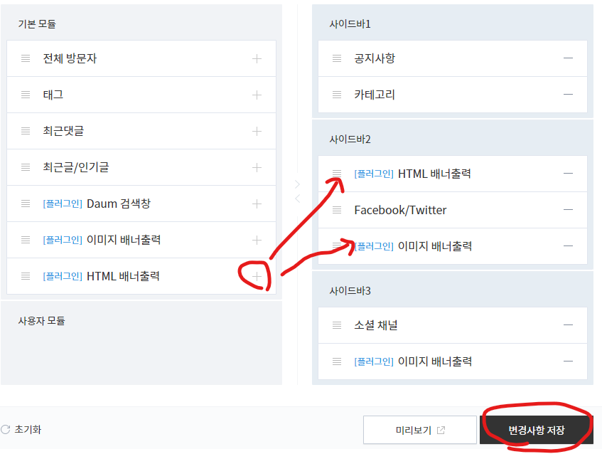 티스토리 관리 -> 꾸미기 -> 사이드바 -> 설정한 플러그인 편집