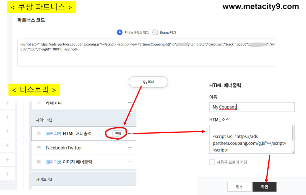 쿠팡파트너스 배너코드를 복사해서 티스토리에 붙여넣자
