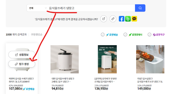 상품을 검색하고 나온 상품에서 링크 생성을 누르면 내 ID가 포함된 URL이 생성된다.