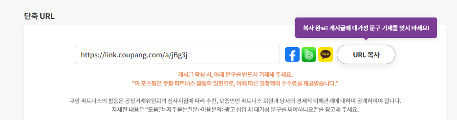 쿠팡파트너스 링크복사