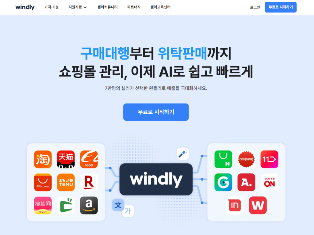 윈들리는 해외구매대행 및 국내 위탁판매 셀러를 위한 SaaS(월 구독형 소프트웨어) 솔루션이다. AI 기술을 활용해 상품 수집부터 번역, 여러 오픈마켓으로의 상품 등록, 주문 관리까지 하나의 대시보드에서 처리할 수 있도록 지원한다.