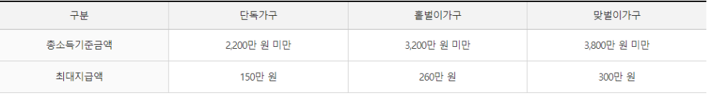 | 총소득기준금액 | 2200만원 미만 | 3200만원 미만 | 3800만원 미만 |
