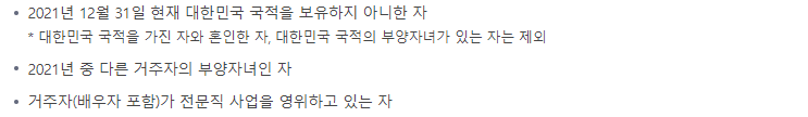 2021년 12월 31일 기준으로 제시된 가구 구성원 기준은 다음과 같다.