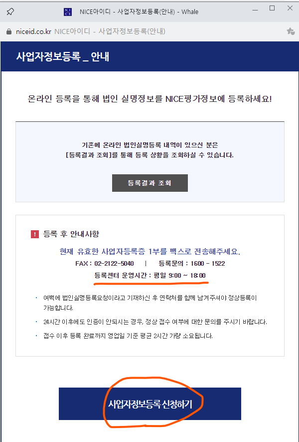 NICE평가정보에 사업자 정보가 등록되어 있지 않다면 사업을 시작한 지 얼마 되지 않았거나, 매출이 거의 없는 경우일 것이다. 이럴 경우에는 NICE평가정보로 연락해서 내 사업자를 등록해야 한다.